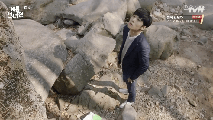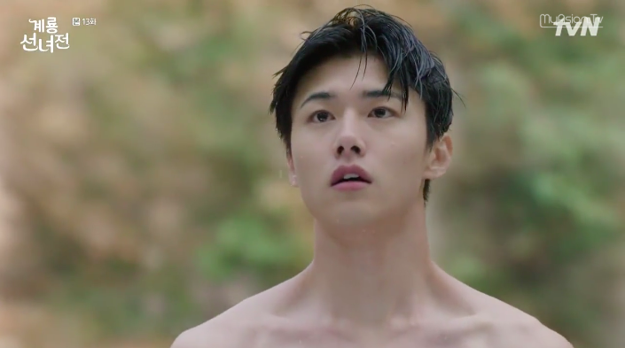So Yi-hyun also heads out to Mount Gyeryong to chase after Kim Geum. Though Doctor Lee pleads for him not to leave and threatens him with their friendship, Yi-hyun still resumes with his plans and asks for Doctor Lee’s understanding. Kim Geum eventually makes his way into the mountains and to the waterfall where he first met Ok-nam. As he stares at the waterfall, a towel falls from the skies and lands right in front of him. He eventually takes a refreshing bath at the waterfall just like Ok-nam did many months ago. However, this time, it’s Kim Geum who’s greeted by Ok-nam as she arrives at the waterfall just as he’s about to exit from it.