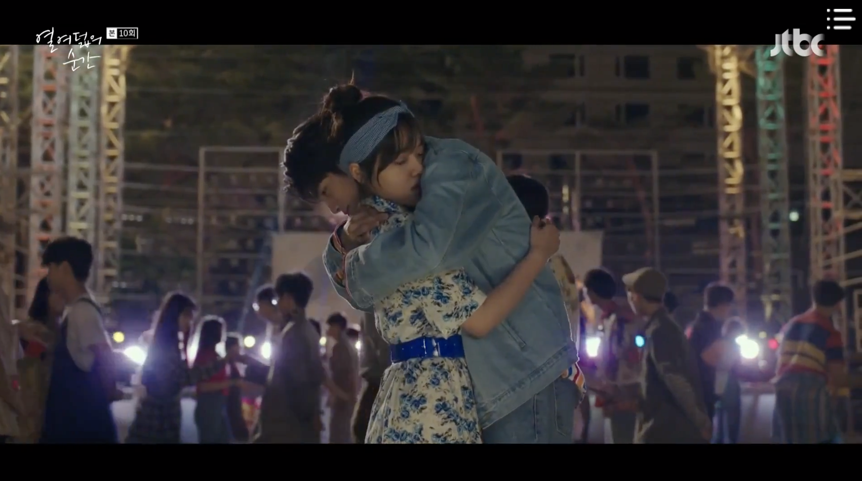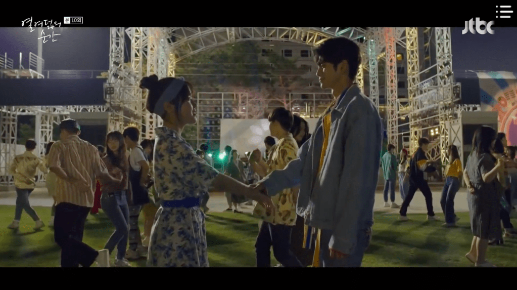 In terms of favorite scenes, I have two specific scenes that I enjoyed a little bit more than others: the first being the very first time that Jun-woo and Soo-bin interacted and met. Oh my goodness, I can’t even describe how I felt when I saw that scene. Soo-bin was worried for Jun-woo so she checked up on him to see if he was okay after her mother almost hit him in their car. It was so subtle and it wasn’t a big deal, but I don’t know what it was about the arm raising and the questioning in that scene that got to me, but it did and it’s my absolute favorite from the entire drama. I know I know – some of y’all are probably questioning me like why I thought Soo-bin and Jun-woo doing some arm raising and arm stretches was my favorite moment from the entire drama when there were plenty of other adorable scenes between them but I think it’s simply because that very first interaction between them served as a good preview of what was to come in their relationship. The way that Soo-bin was so concerned about Jun-woo who she didn’t even know but was worried about and how shy and embarrassed Jun-woo was when interacting with Soo-bin spoke volumes. The interaction showed us intricate details of their characters individually (a kind and thoughtful Soo-bin and then a quiet and reserved Jun-woo), but it also revealed a little of their first impressions of each other. It’s one of those scenes that stood out to me from the drama and that will stick with me for a while. My other favorite scene would be at the end of episode 10 when Jun-woo was all dressed up in his cute looking retro outfit and he basically found a lost and confused Soo-bin amongst a sea of dancing folks. Everything about that scene was absolutely perfect. The way that the camera followed Jun-woo and panned behind him so that you were following him in his search for Soo-bin and then the way Jun-woo grabbed Soo-bin and surprised her and then how he held onto her and hugged her even though Soo-bin didn’t mean to hug him but they ended up hugging anyways. GAAAAAH, THAT SCENE BRINGS BACK SO MANY FEELS and always will. I can rewatch that scene over and over again (if I haven’t made it obvious enough). I LOVE LOVE LOVE these two scenes in particular (and episode 10 in general) and will always remember them for these reasons and so much more.