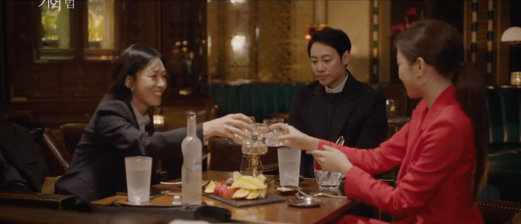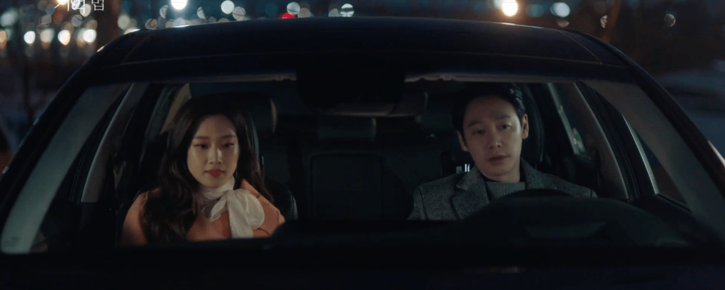Ha-jin tries to persuade Jung-hoon to stay with her just a little longer. She wants to get to know him better and maybe they can become acquaintances. However, Jung-hoon isn’t interested and it’s obvious that she used Director Choi as a way to get closer to Jung-hoon. She never asked him for consent to become acquainted. The two are eventually interrupted by Ha-kyung who had been searching for Ha-jin and this gives Jung-hoon a reason to leave.