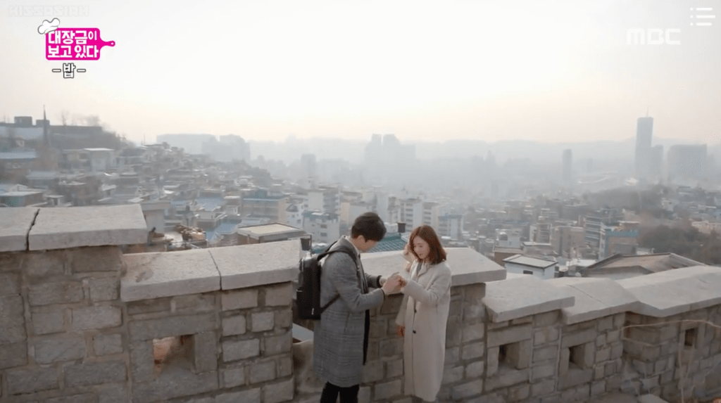 Seung-ah and San-hae take a walk in a neighborhood while munching on some street food snacks. The two discuss about VIP Yang and his kids and just how cute they were. Seung-ah wishes she can also have kids of her own and eventually move into a neighborhood similar to the one they’re currently in. When all hope seems lost due to a phone call she received from her landlord about an increase in the lease, San-hae vows to make Seung-ah’s wish come true. He’ll buy her a house and they’ll live together as a family. He unofficially proposes to her with a fake ring he made out of a little string and asks for her to marry him. Of course, Seung-ah accepts and the two lock lips once again. SO DARN CUTE! San-hae also reveals to Seung-ah that they also locked lips that one time she was in the hospital; it wasn’t a dream like how she imagined this entire time.