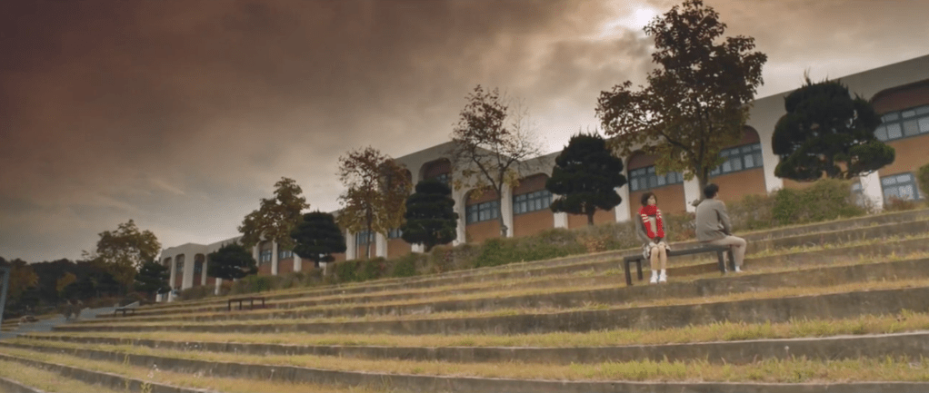 In an attempt to make amends with Jae-sun, Sol-Ah draws a conversation with him later on at school about her parents and how her mother’s passing has affected her dad’s life. Maybe by opening up about her parents, it’ll make Jae-sun feel better and the two will be on good terms again. However, Sol-Ah is a bit too talkative for Jae-sun so he rearranges himself to still be seated next to Sol-Ah, but just facing the opposite way. When that isn’t enough, he pulls Sol-Ah’s red puffy scarf up to cover her mouth. LOL. Though Jae-sun might seem irritated by Sol-Ah’s chattiness, it’s clear he still enjoys being around her. Aww.