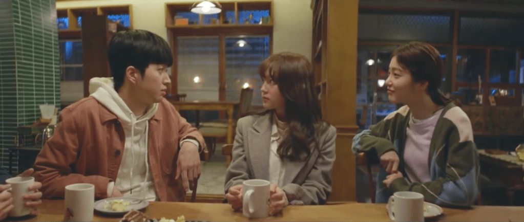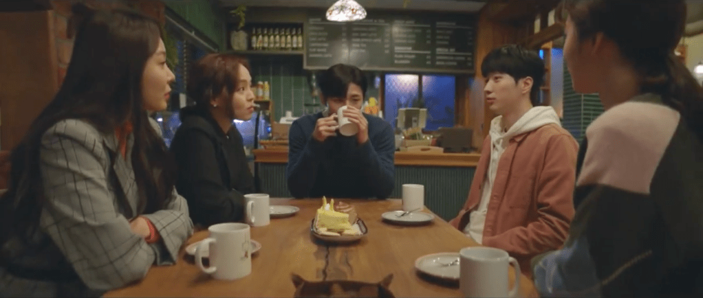 After managing to get Hong-jo to go away, Sol-Ah is interrupted once again by someone else. It’s Doo-sik this time and he’s invited some of their co-workers plus Ji-eun to Jae-sun’s cafe so she should head on over too. Eventually, everyone gathers at Jae-sun’s cafe and chats about Sol-Ah, Doo-sik, and Jae-sun’s art club. As they will eventually find out, quiet and shy Ji-eun was also in the same art club as them! And yes, it was her who won the Grand Prize (Daesang) in their art club. Ji-eun joins the rest of the group at the table and they chat about their art club. Just like Doo-sik, Sol-Ah, and Jae-sun, she too has the same exact ring as them and she too knew about Sol-Ah’s webtoon since it was a project that Sol-Ah worked on dating back to their art club days. Doo-sik is fascinated as to how Jae-sun remembered that Ji-eun was in their art club when she was so quiet and shy; Sol-Ah loves how observant Jae-sun is about everything and how much attention he pays to details.