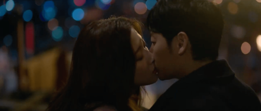After taking a sip of some beer that Jung-hoon got for Ha-jin from a convenience store, the two sit down on the stairs of a dark alley to talk about things. Ha-jin is aware that Jung-hoon overheard the harsh words that the director expressed to her earlier so she follows up with Jung-hoon about the topic. Does he too feel the same way about Ha-jin? Does she look cheap? Is she meant for the drama? Jung-hoon sides with Ha-jin by criticizing the director for his words. He also encourages Ha-jin to keep being in the drama and ignore what the director said to her. Ha-jin cheers up a bit after hearing Jung-hoon’s words of encouragement. Thanks to the wine and sip of beer she drank earlier, she gathers the courage to give Jung-hoon a peck on the lips (EEEEEEEK!). Jung-hoon is taken aback and warns Ha-jin not to do it again. Though Ha-jin claims she won’t have any regrets if she expresses her feelings towards Jung-hoon, he claims she will have regrets. More than he will.