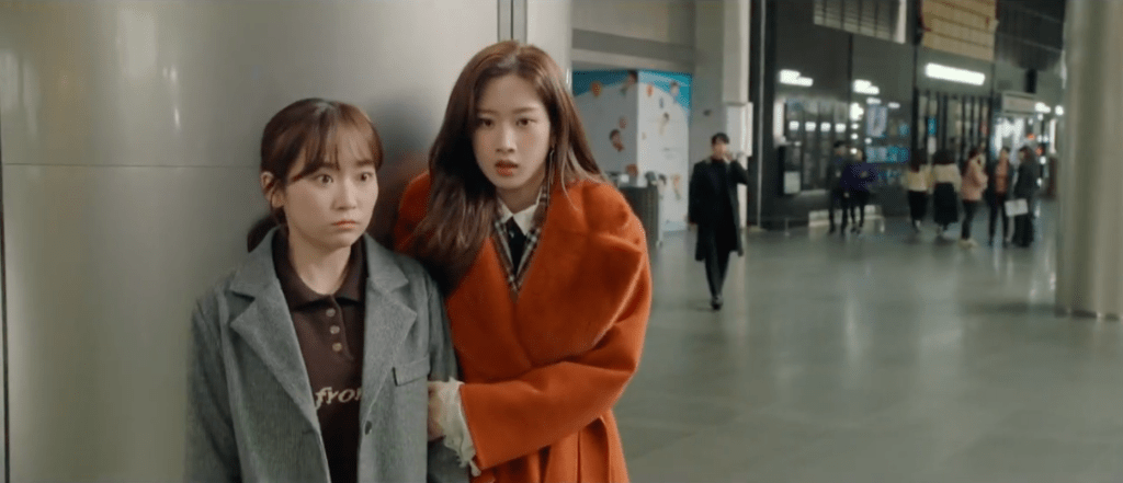 The next morning, Ha-jin and Ha-kyung make their way out of the same broadcasting station building where Jung-hoon works. Ha-kyung finds it suspicious that Ha-jin hasn’t mentioned anything about visiting Jung-hoon and it especially doesn’t help when she and Ha-jin hides behind a pole upon seeing Jung-hoon in the lobby. Eventually, Ha-jin gathers the courage to confront Jung-hoon, but her plans falter when she witnesses Tae-eun with Jung-hoon. Wait, how does Tae-eun know Jung-hoon? They’re friends? Why are they meeting up with Il-kwon for some food? Ha-jin volunteers to come along with the trio and requests to eat with them as well.