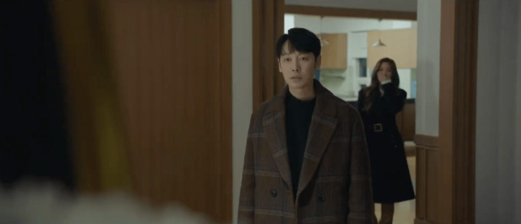 Jung-hoon prepares to drive home that night after work, but volunteers to drive Ha-jin since Moon Chul is unavailable to pick her up. Jung-hoon drives Ha-jin to the hospital since her friend has been hospitalized. While dropping off Ha-jin, Jung-hoon notices his father entering the hospital. Alarmed and confused, both he and Ha-jin quietly trail behind Jung-hoon’s father. They eventually find themselves in a room for a gathering that no one ever wants to be in: a funeral. Leaning against the wall is a photo of Jung-hoon’s mom.