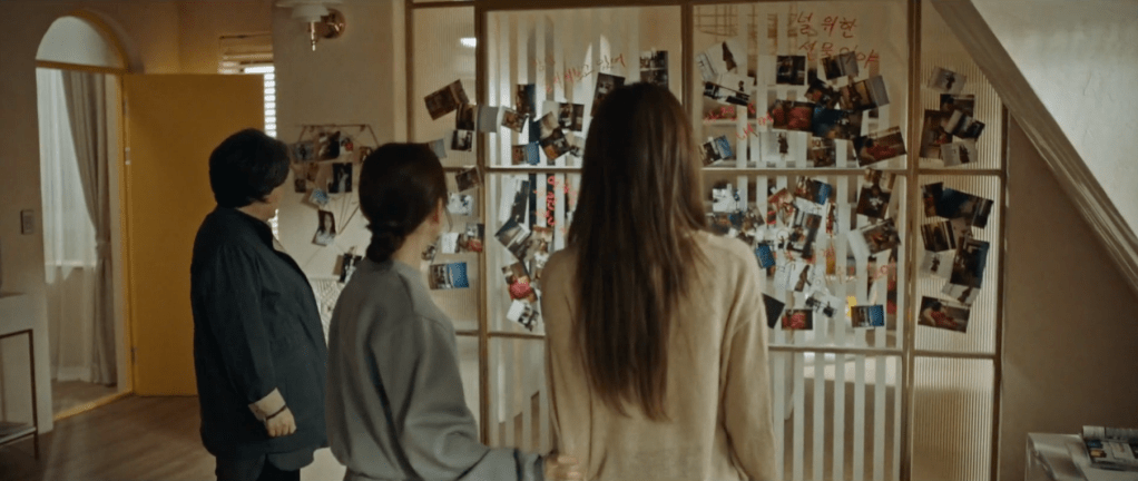 Jung-hoon and Tae-eun make up for the small argument they had with each other during Mom’s funeral. Jung-hoon apologizes for lashing out at Tae-eun for being unable to fix his health condition for him; Tae-eun apologizes for installing a tracking app on Jung-hoon’s phone without him knowing. The two friends remain on good terms with each other. Meanwhile, CEO Park heads into Ha-jin and Ha-kyung’s house in a panic. She’s alarmed at how the security cameras outside are spray painted black. Upon bringing this to Ha-kyung’s attention, they both rush to Ha-jin’s bedroom who’s still asleep. When they finally manage to break into the bedroom, they catch a terrifying sight of photos of Ha-jin taped all over her wall.