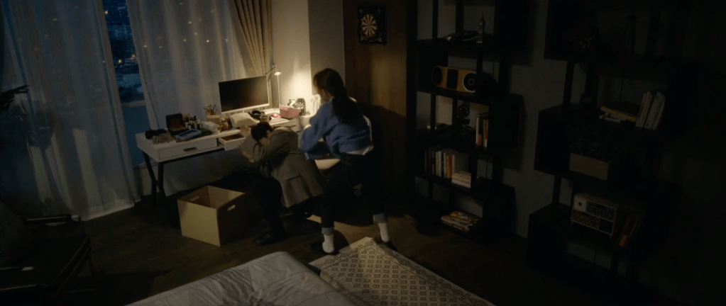 While browsing throughout the house in search of an item, Jung-hoon’s Dad comes across a box. Curious, he opens it to check what’s inside. At the same time, Jung-hoon studies footage from the security camera at Ha-jin’s house the night it was blacked out. He is interrupted by a phone call from Dad which he ignores. When Jung-hoon eventually does return to work, things are still the same. Director Choi still nags at Technical Director Kim and Jung-hoon is still fed up with their bickering. Haha.