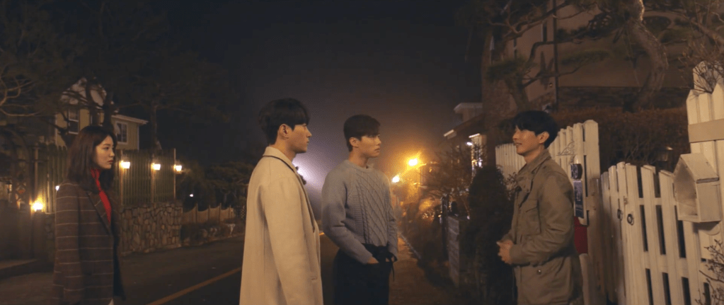 Jae-sun and Hong-jo grow suspicious and protective when they assume that the man must be coming by because he wants to spend time with Sol-Ah. However, it’s not until the man clarifies that he wanted to spend time with the cat that they both calm down. He’s witnessed Sol-Ah with her cat a few times at the veterinary hospital so he was just worried about the cat and wanted to check up on it. Hong-jo steps up to inform the man that the cat (aka him) is well and happy so the man leaves. Sol-Ah stays up late that night reflecting on that moment. She remembers how both Jae-sun and Hong-jo were so protective of her and how Hong-jo even held her hand.