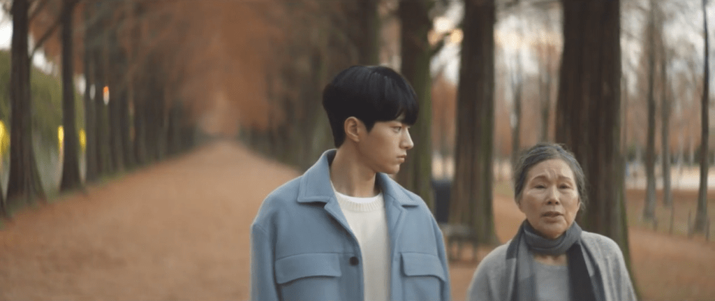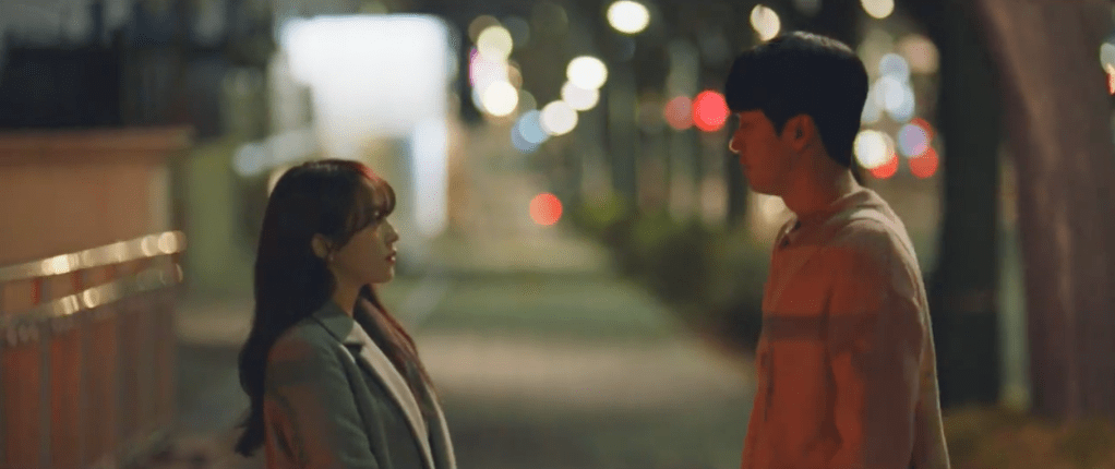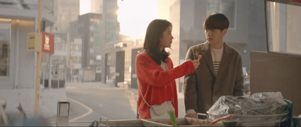 Sol-Ah continues to come up with excuses as a reason to not work on her webtoon. If that’s the only way to get Hong-jo to stay then so be it. The duo head out for a date. After granting Hong-jo his own cell phone, Sol-Ah attempts to gain inspiration by getting some fresh air and eating some spicy rice cakes. But nothing seems to be coming to mind so they make a stop at the same exact bench where Hong-jo and Sol-Ah sat at before she knew of his existence. While Sol-Ah has her own memories associated with the bench, Hong-jo specifically remembers it for the moment he first met Sol-Ah as a little young and lost boy. That bench is the same exact spot where she handed him her red scarf when he was still a little boy. It’s amazing just how much time has passed by.