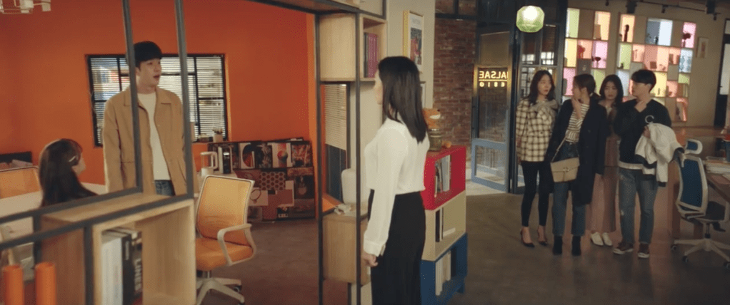 Sol-Ah extends her time with Hong-jo by purposely not work on her webtoon. She wants to spend as much time as possible with Hong-jo. While at work, Ji-eun politely and shyly declines Doo-sik’s invitation to grab lunch with everyone else in the office. With everyone gone, she works on the wedding invitation that CEO Park had assigned her to do. Doo-sik notices the strange behavior from Ji-eun and calls CEO Park out for taking advantage of Ji-eun. Ji-eun has spent so much time working on the wedding invitation for someone she doesn’t even know, Ji-eun’s barely had any time to herself. He wishes that Ji-eun would just be able to decline CEO Park’s request, but because she never says no, she gets taken advantage of. After realizing the tension that he created in the office, he rushes out of the workplace. Ji-eun follows after him to get his attention, but he’s too embarrassed to face her.