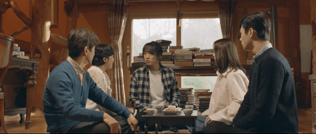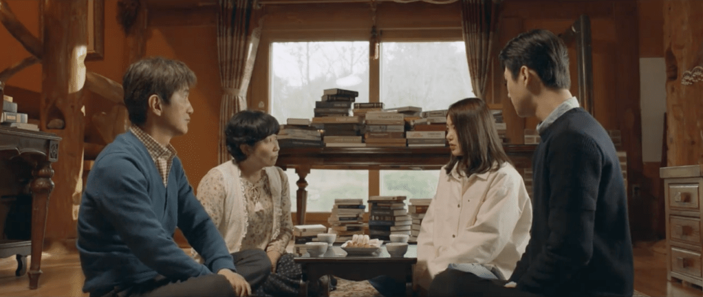 Jae-sun and Sol-Ah return to Dad and Bang-shil’s house with cat Hong-jo. While cat Hong-jo is asleep, Jae-sun takes the opportunity to make amends with Sol-Ah. He first reveals to her that the little boy she gave her red scarf to was Hong-jo. That’s how he disappeared from her sight and that’s eventually how Jae-sun discovered kitten Hong-jo with Sol-Ah’s red scarf and, therefore, came to misunderstanding her. Now that she’s aware of this, Jae-sun brings the conversation back to him. He wants to turn back time and make things right this time with Sol-Ah (*cues ‘Make It Right’ by BTS*).