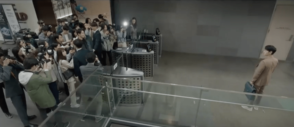 Technical Director Kim manages to grab a copy of Tae-eun’s dad’s book about Jung-hoon. OMG. He shares the news with Director Choi who feigns ignorance about the subject in Tae-eun’s dad’s book. A person who suffers from hyperthymesia? Who could it possibly be?! But of course, Director Choi is well aware of who the subject of the book is about and plans on reading the book before her husband can get around to finishing it. Speaking of Jung-hoon, he returns to work after being released from the hospital. However, poor Jung-hoon receives no break. Just as he enters the building to his work place, he is swarmed by a bunch of reporters inquiring about the book that is written about him. As if that wasn’t bad enough, Reporter Park joins the crowd of reporters and grabs Jung-hoon’s attention. He has a big scoop on something and it seems like it could potentially affect Jung-hoon’s life. Jung-hoon stares back at Reporter Park in curiosity and uncertainty.