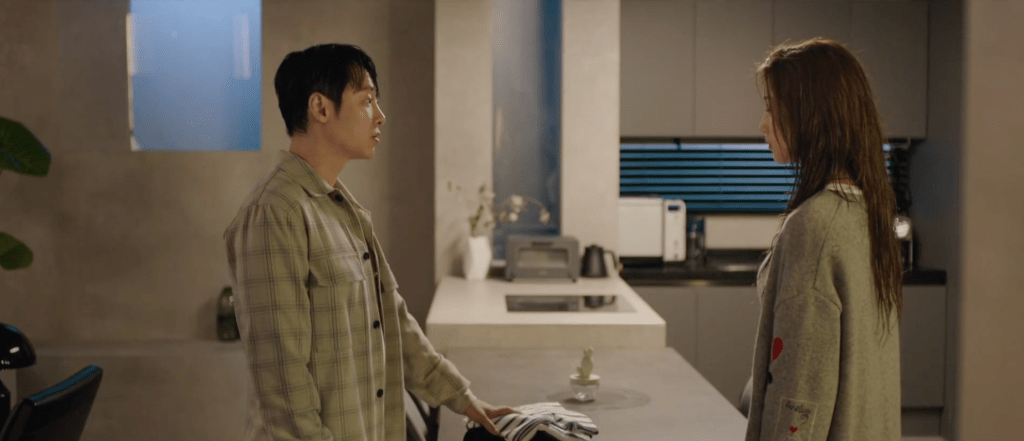Yes, a part of it is that she does still want to be with him which is why she is, but another part of me feels as if she only went back to him because he wouldn’t leave her alone. I wanted something more raw between them; if they went on a break because Ha-jin discovered about Seo-yeon and Jung-hoon and her role in all of this, I wanted Ha-jin to get back together with Jung-hoon because they had a conversation about their past and chose to move forward together. Instead, we didn’t get any of those difficult conversations between Jung-hoon and Ha-jin about Seo-yeon. Instead, we got a conversation at the hospital where Ha-jin gave in because Jung-hoon expressed that he was not going anywhere or that he was not going to change his mind about Ha-jin. We know that their feelings for each other are genuine, but I also wanted to see the two acknowledge their past. That was what ultimately and initially drove them apart, that’s also what should merge them back together to want to be in each other’s lives.