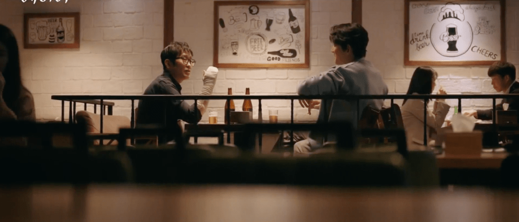 After work, Yi-sang and Soo-cheol head out for some drinks. Soo-cheol brings up In-Ah, Yi-sang’s ex-girlfriend, and questions why they broke up. Yi-sang recalls a fight they had with each other back when they used to live together and explains that they would fight over the smallest things. It was obvious that they were both tired and fed up with their relationship. Soo-cheol reassures Yi-sang that he can meet someone new and nice and start all over again, but Yi-sang is confident in his decision to be alone. It’s more comfortable to be alone and he wouldn’t want to burden someone else with the problems in his life.