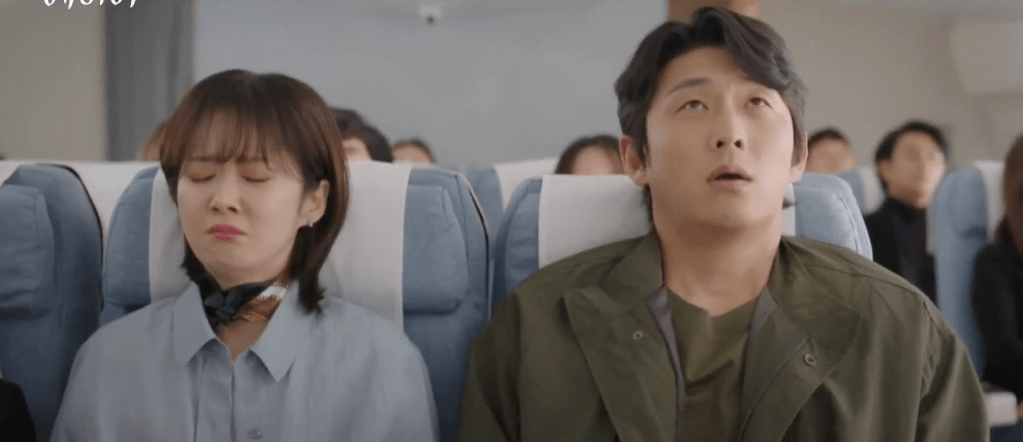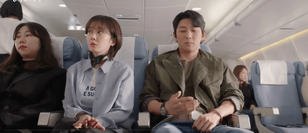 Mrs. Shim and Manager Cheol-joong are reprimanded by Director Joo for the low number of sales for ‘The Baby.’ He gives them one last opportunity to redeem themselves: they’ll need to promote the city of Mureung in their magazine. If they manage to do it successfully, all local government projects will be handed to them afterwards. With Ha-ri’s suspension, she becomes an easy target by her co-workers and she’s selected to visit Mureung to come up with an advertisement piece. Yi-sang himself is selected to accompany Ha-ri as the photographer. Even though he’s too embarrassed to face her in person after the drunk incident the other night, he has no option but to join her in the business trip since Soo-cheol’s arm is still injured. Eventually, the two make their way onto their flight and sit down next to each other on the plane. To comfort a frightened Ha-ri, Yi-sang holds her hand as the plane begins take-off. Aww.