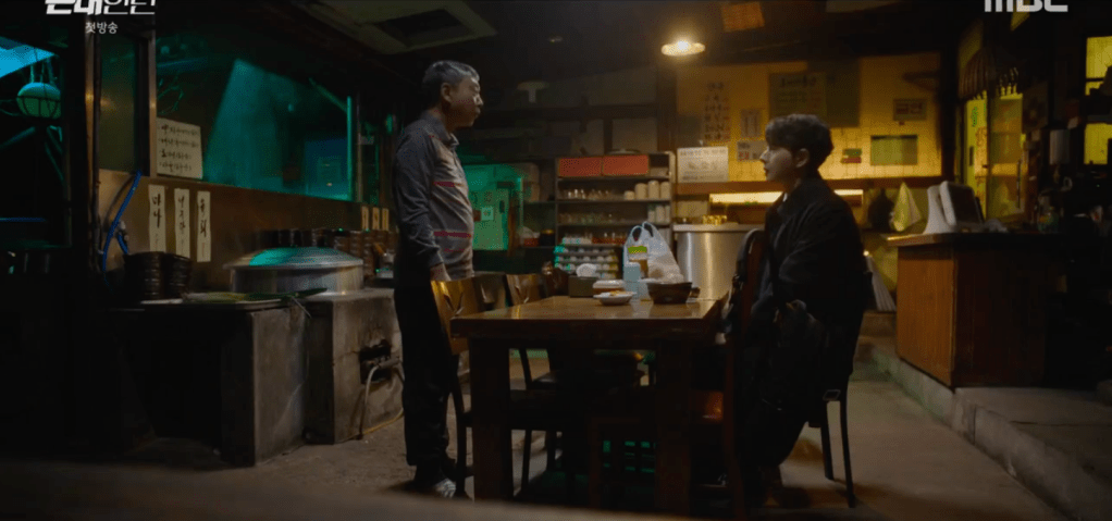After the incident, Yeol-chan is dismissed by the man who isn’t in the mood to talk to a rookie like him. However, Yeol-chan’s grumbling stomach provides him with the opportunity to stay and the man cooks up a meal for our intern. While the man is busy cooking, Yeol-chan attempts to get in contact with Man-sik and his colleague to warn them about the man’s suicide attempt. He feels as if he needs extra support since this is his first time ever dealing with a situation like this. However, neither are available at the moment to assist Yeol-chan so he’s left alone with the man. Yeol-chan tries a taste of the man’s ox head rice soup which grabs his attention for a second. However, he pretends as if nothing is wrong and he eventually bids farewell with the man that night. Before leaving, Yeol-chan clarifies any potential misunderstandings and hopes the man won’t get any bad ideas. He walks away and waits at the bus station to go home.