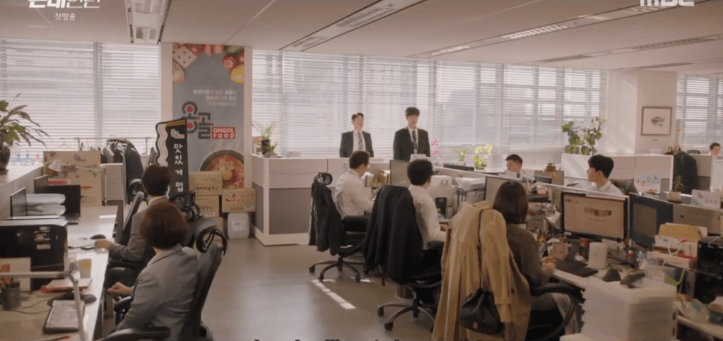 The first episode starts off with Manager Lee Man-sik (Kim Eung-soo) entering a subway and demanding for a young student to give up his seat for him. Our narrator, intern Ga Yeol-chan, states that a Kkondae is slang for an old person or teacher. However, not all elders are Kkondae’s as younger people can also identify with the term. Essentially, Kkondae-like people force others to accept their old-fashioned ideas and beliefs regardless of their age. The term perfectly applies to Man-sik and he causes trouble in the subway just as the student gets up from his seat to walk away. After the student falls onto the ground due to his anemia, many people critique Man-sik for forcing the boy to give up his seat. Eventually, the student is transported to the hospital and our Manager goes on with his day of work at food company, Ongol. He arrives at the office and immediately reprimands Yeol-chan (Park Hae-jin) for arriving late. That triggers Man-sik to target Yeol-chan for a couple of other things that day: he’s not impressed with the report that Yeol-chan had written up as well as takes credit for an idea that actually belonged to Yeol-chan. It’s clear that Man-sik disproves of Yeol-chan’s efforts in the office and he makes it difficult for Yeol-chan to do his job as an intern.