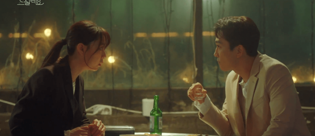 I think the drama so far has been doing a great job in developing Hae-kyung and Do-hee’s relationship. It’s slow but so so good when they do spend time together and actually find themselves enjoying their time together. They didn’t have a ‘fall in love at first sight’ type of love and I would even argue that that type of first impression would have been made things less interesting between them. I like how we’re witnessing Hae-kyung and Do-hee go from being airplane partners to now dinner partners. I love how we’re witnessing the two feel more and more comfortable with each other to the point where they can be honest with the other. I love how the two bicker with each other over small things, but they also can let some of their walls down and be vulnerable with each other the next. They even feel comfortable enough to share details about their love lives with each other on what was barely a second date. It’s as if the two have known each other for a while given what we’ve seen of them so far together, but it’s crazy to think that it hasn’t even been that long since they’ve known each other. Do-hee and Hae-kyung are slowly forming a connection through each dinner date and watching them spend time together has been such a sweet breeze; their love is a slow burn type of love and I’m all here for it. I want more of it.