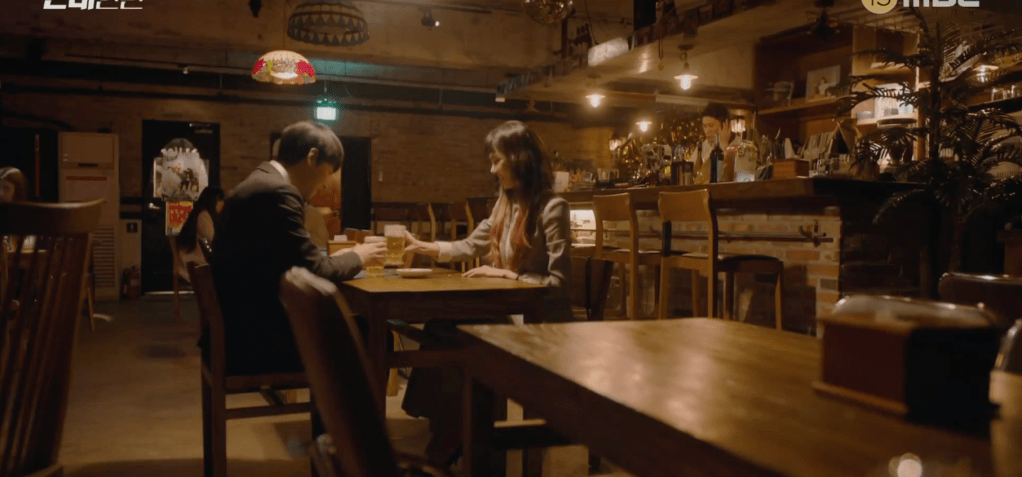 The company dinner with the interns that they were supposed to have that night is cancelled with Yeol-chan’s last-minute “meeting” so the team heads home after work that day. Assistant Manager Oh finds it strange how Yeol-chan didn’t really interact with Man-sik despite being his mentor, but Seung-jin and Jung-eun claim they saw Yeol-chan interact with Man-sik at the end of the day. Interns Tae-ri and Yoon-soo celebrate their day of work by going out for some drinks amongst themselves. While Yoon-soo wants to invite Man-sik, Tae-ri feels more comfortable with it being just the two of them. They share their thoughts on how their internship experience is going so far. Tae-ri is a bit disappointed that their company didn’t throw them a welcoming party; she feels as if she’s a bit neglected even if she’s just an intern. However, she’s thankful to be working for such a big company and she feels as if she has this special connection to Yeol-chan. Yoon-soo feels similarly as well and recalls a moment back during his interview in which Yeol-chan asked him a question. Although Yoon-soo thinks Yeol-chan appreciated his honest answer, Yeol-chan actually felt the opposite. Lol. I love how their interpretations are completely different than how Yeol-chan really felt.