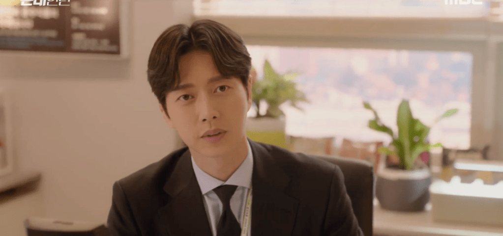 With three new interns on the team, Yeol-chan decides it’s best to hold a group meeting. They all meet in the conference room where Yeol-chan formally welcomes the new team members and introduces a mentor-mentee program to make the most out of the internship program. Yoon-soo will be paired up with Assistant Manager Oh Dong-geun (Go Gun-han), Tae-ri will be with Tak Jung-eun (Park Ah-in), and Man-sik will be under Yeol-chan. Everyone’s confused at the pairing, but it’s obvious internally what Yeol-chan’s reasoning for this is. While running some errands together, employee Kim Seung-jin (Hong Seung-bum) shares with Yoon-soo his tips and tricks on what kind of person Assistant Manager Oh is and how he does things. He also shares insider tips with Tae-ri about her mentor, Jung-eun, who’s a contract worker at the company. Lastly, he meets with Man-sik to share his information on Yeol-chan, but there’s not much he can say about their boss other than good things.