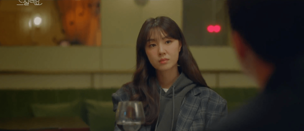 No-eul and Jae-hyuk have a conversation with each other at a bar restaurant. There, the two chat with each other over their first love’s, respectively, and how they want to rekindle the relationship they had with them. No-eul isn’t going to let go of Hae-kyung now that she’s back in his life and Jae-hyuk feels the same way about Do-hee. Jae-hyuk sends No-eul off after they finish meeting up. Meanwhile, Hae-kyung and Do-hee also discuss about their first love’s with each other during their dinner date. Do-hee is still in disbelief that Jae-hyuk returned to her as if she was waiting for him or wanted him to come back. That’s when Hae-kyung opens up to her and shares the news that his first love (No-eul) also re-entered his life. While she stayed in her bedroom for two months after her break-up with Jae-hyuk, Hae-kyung drank heavily to get over his break-up with No-eul. Though the two had different coping mechanisms, they were both struggling with their break-ups.