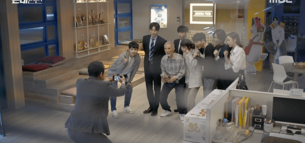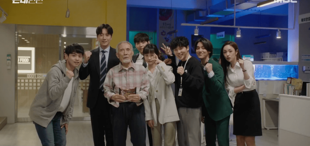 Man-sik himself is the VIP again this time. After an intense and hectic search, he discovers Mr. Park alive and healthy, eating some of the ramen with other villagers. Mr. Park runs away from Man-sik and manages to escape from him, but Man-sik communicates the news to his team about Mr. Park’s condition. Meanwhile, Tae-ri herself finds the student volunteer who recorded and uploaded the video of Mr. Park. It turns out the video was cut short and Mr. Park actually didn’t faint because of the ramen. The video was just cut short and didn’t show the rest of the video which was Mr. Park getting back up and stuffing himself with the rest of the noodles. Our team is relieved after learning the truth and things are finally peaceful again. They even invite Mr. Park himself to visit their office and they snap a few photos of him in front of the company’s mascot. Thanks to Mr. Park and the video, Joonsoo Foods received some public promotion. To compensate, they reward Mr. Park with a sponsorship to any food that he wants from the company.