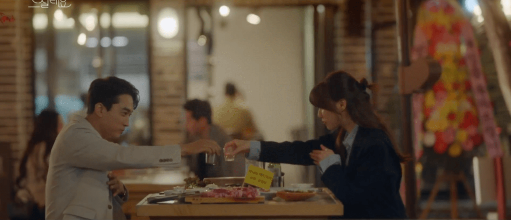 While walking around in the neighborhood, Do-hee comes across the homeless man once again. She approaches him for some money at first, but switches to a dinner invite when she reaches a dead end with her original request. Together, the two grab some drinks and food together at the same stew restaurant that Do-hee frequents. They have a conversation about friendships in which Do-hee notes that there is someone who she’s met who she would like to remain friends with. She doesn’t know much about him, but she feels comfortable enough around him to want to stay as friends. Eventually, CEO Nam is called by Do-hee to help pay for their food and drinks since Do-hee doesn’t have her wallet on her. CEO Nam and the homeless man immediately recognize each other upon making eye contact and things get awkward rather quickly. The homeless man eventually excuses himself and he leaves first. CEO Nam isn’t happy with Do-hee’s association with the homeless man and warns Do-hee to stay away from strangers. However, Do-hee fights back and questions why CEO Nam gave the homeless man some dumplings if he seemed so dangerous. Lol. Do-hee also reveals the truth as to why the homeless man walked with CEO Nam on the night she gave him the dumplings. Unlike what he claimed, it wasn’t because he was scared of the dark. In reality, he was just looking out for CEO Nam.