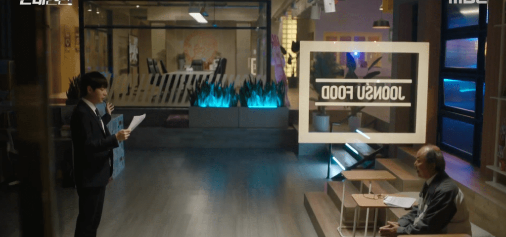 Tae-ri and Man-sik’s presentation about renewing their packages and coming up with a new marketing strategy is also met with great responses. Joon-soo is the most impressed and supportive of the team out of everyone there in the room, lol. Just when things are looking great for our interns, the situation quickly turns grave and goes downhill. A detective from the Intellectual Crime Team enters the interview room in search of Tae-ri, Man-sik, and Yoon-soo. They are to be interrogated for being involved with the recruitment corruption that Joonsoo Foods elicited with their internship. While everyone else remains alarmed and confused at the news, Executive Goo hides a smile under her face. Yeol-chan is infuriated at Executive Goo’s betrayal and decision to still publish the article despite him turning down the Junior Managing Director position. All hell is about to break loose.