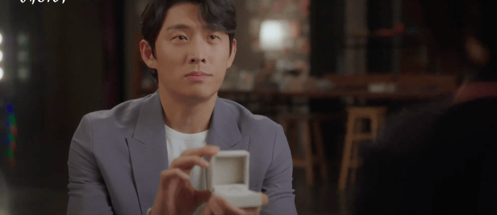 Just when everything is going well for our couple, things get even bigger and better. Yi-sang gets down onto one knee in front of Ha-ri and pulls out a ring box with a set of rings inside. Although nervous and anxious, the photographer musters all his courage to speak from his heart. He proposes to Ha-ri and asks for them to get married. Yi-sang wants to marry Ha-ri.