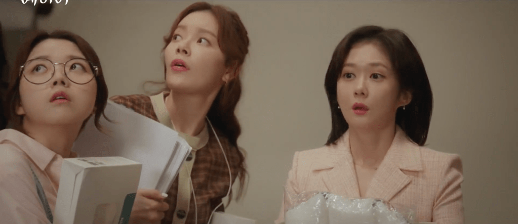 Rumors of ‘The Baby’ discontinuing spreads throughout the company and Ha-ri has a talk about it with Director Joo. He proposes his plans for a “restructuring” of some sort (AKA he wants to cut down on the amount of employees working at ‘The Baby’). But wait, they’re already so short-staffed and things are already as difficult as it is. However, there needs to be a way to cut down on costs somewhere somehow. Ha-ri vows to come up with a way to save ‘The Baby’ through advertisements and sales. They agree to table the talk about downsizing the team for another time, but Director Joo still wants a restructuring proposal from Ha-ri just in case. After her meeting with Director Joo, Ha-ri has a brief talk with Cheol-joong and Yeon-ho in the office hallway. She suggests that the Editing team brainstorm on possible events and ideas they can host while Cheol-joong and his team can think of ways they can market ‘The Baby.’ So with that, our Editing team gets to work. They share multiple ideas about possible events and how they can get their name out there.