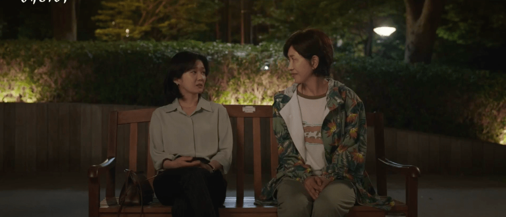 While walking home that night, Ha-ri encounters Mom in the park near their neighborhood. Mom is out to get some fresh air so Ha-ri joins her mom in doing the same. They have a heart-to-heart conversation about marriage and the fears related to getting married. Ha-ri’s curious as to what Mom’s life would have been like had she never gotten married and given birth to Ha-ri. Mom doesn’t think too much about it and assumes that she would have gone on with her life in some other way. Is Ha-ri asking because she’s worried that she might not have a kid herself? Ha-ri admits that she is worried. She’s worried what her life will be like if she was to get married, not be able to have a kid, and then suddenly be left alone because her husband left. However, Mom reassures her daughter that she will always have Mom with her. They can grow old together until the very end. Aww.