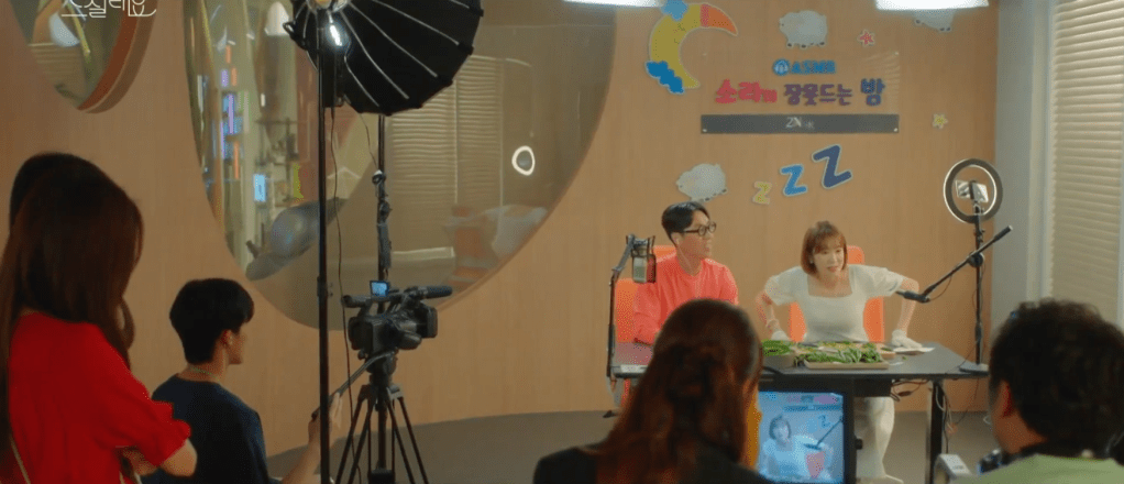 At 2N Box, So-ra prepares for another livestream with PD Jin-kyu. Do-hee joins her with the cup of coffee Hae-kyung bought her and she’s reminded of the conversation they had with each other when they were buying coffee. Do-hee is willing to treat him out for dinner that evening so he should consider what it is he wants to eat. She also thanks him for attempting to speak casually with him even though it’s obvious he feels awkward and uncomfortable. Hae-kyung thanks his girlfriend back for tolerating all of it. Haha.
