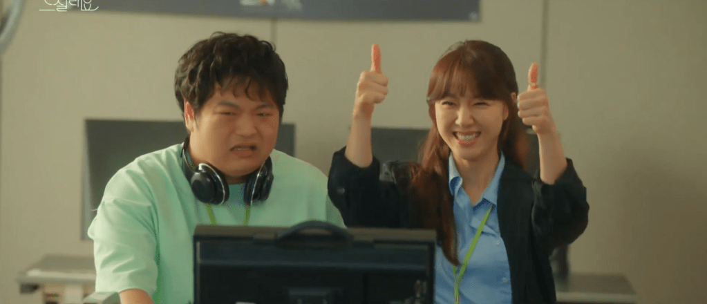 CEO Nam rushes to meet Keanu outside of the convenience store at 8:10AM. They have some free time so CEO Nam proposes that they hang out that day. Back at 2N Box, So-ra brings to Do-hee’s attention the reporter that No-eul has brought around with her to interview folks at the company. He asks staff multiple questions about No-eul’s involvement and relationships with the company. So-ra and Do-hee are both suspicious of No-eul’s plans, but they also refrain from saying much. However, it’s not until No-eul and the reporter she’s hired are super pushy about interviewing Do-hee that Do-hee finally says something. The reporter assumes it was Do-hee who brought Hae-kyung and No-eul together despite knowing that they used to be partners which Do-hee is not appreciative of.