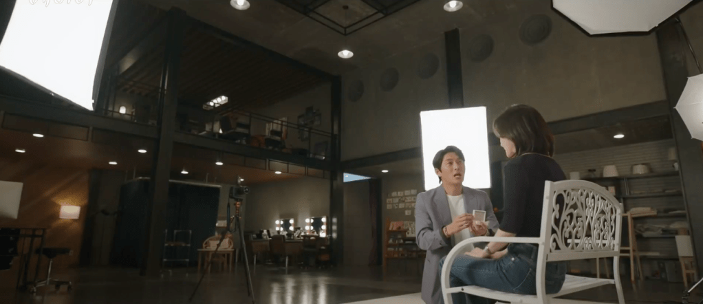 Yi-sang too has been missing Ha-ri this entire time that they were apart. Everything reminds him of her. From actually watching her enter her house to taking photos of an elderly couple at a park, Ha-ri appears in Yi-sang’s mind and memories with every sight. While camping at a river, he breaks down into tears upon checking Ha-ri’s SNS account. One of her posts includes a photo of her with the caption, “Like always, I’m doing great.” Ha-ri might seem like she’s doing fine, but Yi-sang isn’t. He isn’t doing great. He’s struggling without Ha-ri in his life.