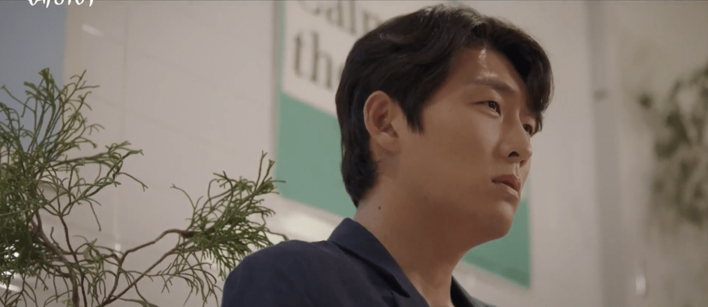 Eu-Ddeum and Hyo-joo collaborate to find recruit and seal some advertisements for ‘The Baby.’ The two end up bickering with each other on the approach they should take which Hyo-joo eventually apologizes for. She’s been doubting herself and her abilities at work for a while now so she’s not sure if she’s doing well or not. Eu-Ddeum cheers her up by complimenting her writing and how she’s improved in that aspect of her work life. Eu-Ddeum steps outside for a bit to grab the two some food. When he returns to the office, he discovers Hyo-joo asleep on the couch so he wakes her up. He chuckles upon seeing a mark on Hyo-joo’s face and hints for her to wipe it off. Hyo-joo won’t be tricked this time and she comments that she won’t fall for his actions again. She’s learned her lesson. Haha.