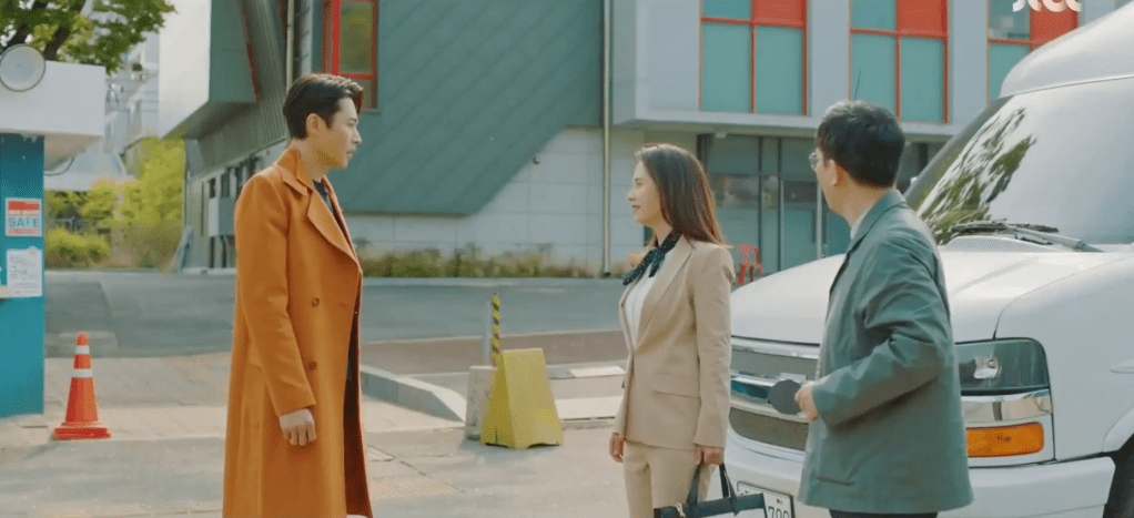 While Jin hosts a small little fansign in the classroom after his lecture, Ha-nee is still suspicious between Yeon-woo and Jin. She even asks Dong-chan who she resembles more between the two, lol. Jin’s event eventually concludes early by Manager Myung who drags the celebrity out of the school. While in the van, Manager Myung stresses out about the photos and rumors that’s spread about Jin. People assume that he must be the dad of one of the students. Although Manager Myung wants to escape from the school, he encounters one more obstacle: Ae-jung. She manages to stop him from driving after showing up in front of the van and is greeted by Jin who jumps out of the vehicle to greet her. Although it’s been 14 years, it’s as if nothing has changed between the two. Their eyes lit up upon talking to each other and reuniting. But wait, how did Jin know that Ae-jung would be at the middle school? How did he find out about this guest lecture?