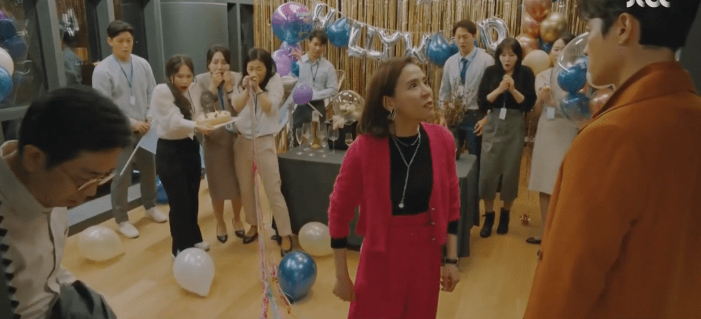That night, Jin returns to the office of his entertainment company and receives more texts from Ha-nee who wishes to get some kind of response from him. As if that wasn’t stressful enough, Jin enters CEO Song’s office to find her and the rest of his staff throw a huge celebratory party for him. CEO Song managed to convince the Hollywood director to star Jin as the main protagonist in the movie. However, Jin announces his decision to drop out of the Hollywood movie. He has another better opportunity and movie to participate in. Manager Myung arrives just as Jin relays the news to everyone and CEO Song is close to taking her anger out on Manager Myung once again. However, just like all the other times, Jin protects his manager and claims his decision as his. He then makes a call to a reporter about a possible article that will include information abuot Jin’s decision to turn down his Hollywood offer. CEO Song throws Jin’s phone onto the ground, but Jin can care less. At least things will be quiet for a while.
