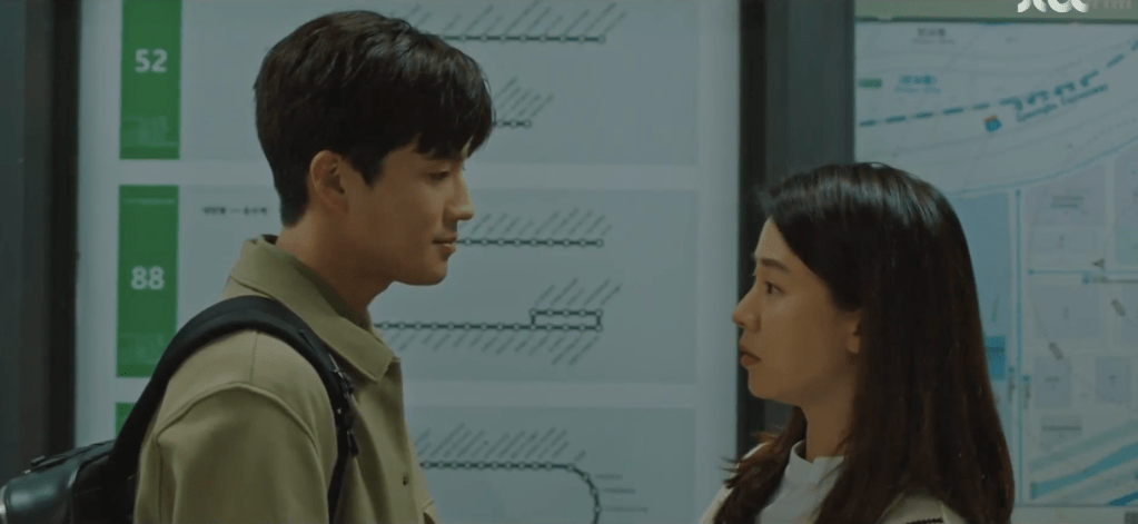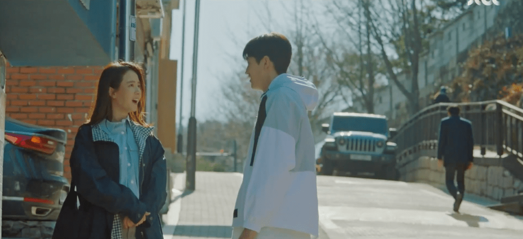 Yeon-woo shifts Ae-jung’s attention towards him and he grabs her wrist to stop her from calling Dae-oh back. He explains that he couldn’t focus on the movie. He doesn’t remember anything from the movie because he was too caught up in focusing on Ae-jung. Yeon-woo harbors the courage to confess to Ae-jung and to admit his feelings for her. He likes her. Ae-jung is shocked and surprised by the confession, but she doesn’t have much time to react. Instead, she catches a vehicle pulling a reverse on the lane right next to them and the two are splashed with water because of the car. Inside the vehicle is none other than Dae-oh who’s not so thrilled at the sight of Yeon-woo and Ae-jung together.
