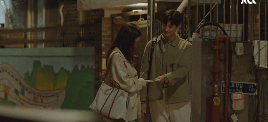 Ae-jung heads over to a cafe to meet with Dae-oh. She notices a car with the license plate 1780 parked at the cafe and realizes that it was Dae-oh who almost ran her and Yeon-woo over the night before. Ae-jung doesn’t bring up the incident at first once they begin their meeting. She expresses her gratitude to Dae-oh for scheduling a meeting with Ah-rin. Plus, they were both invited to Cheonmyeong’s Night — an event where the most prominent members in the film industry come together and meet. After showing some gratitude, Ae-jung switches her demeanor and attitude. She criticizes Dae-oh for the car incident from the night before. They could have gotten hurt and it would have been manslaughter. Dae-oh defends that Ae-jung committed an act of public indecency herself with the way that she was with Yeon-woo. He disproves of the way that she was staring at Yeon-woo at the bus station; it’s a gaze that he knows all too well himself as a former lover of Ae-jung’s. Eventually, Ae-jung decides to draw the line between the two by writing down rules that they are to follow and respect.