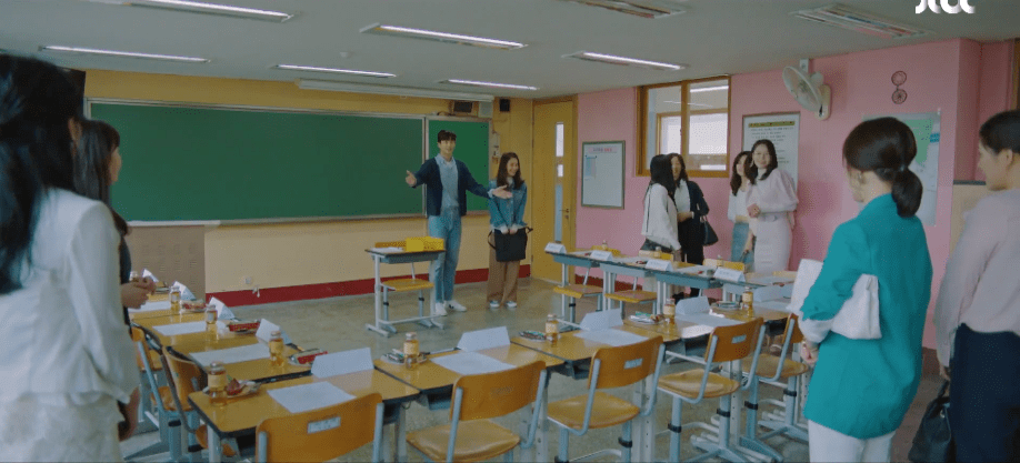 Yeon-woo’s mom grabs some food with her friends. Of course, they bring up Yeon-woo and rumors that he’s seeing someone at the moment. Yeon-woo’s Mom is surprised and shocked by the news since she herself hasn’t heard anything. Meanwhile, Yeon-woo prepares for his first PTA meeting with Ae-jung present. Upon arriving, he introduces Ae-jung to the rest of the mothers in the classroom and they all gather to discuss about activities and events that they can host throughout the year. Ae-jung attempts to fit in and to contribute to the meeting as best as she can, but it’s obvious that she’s a novice to all of this. Yeon-woo shows her his support by writing an encouraging message on the packet that he gave specifically to her and nodding at her throughout the meeting.