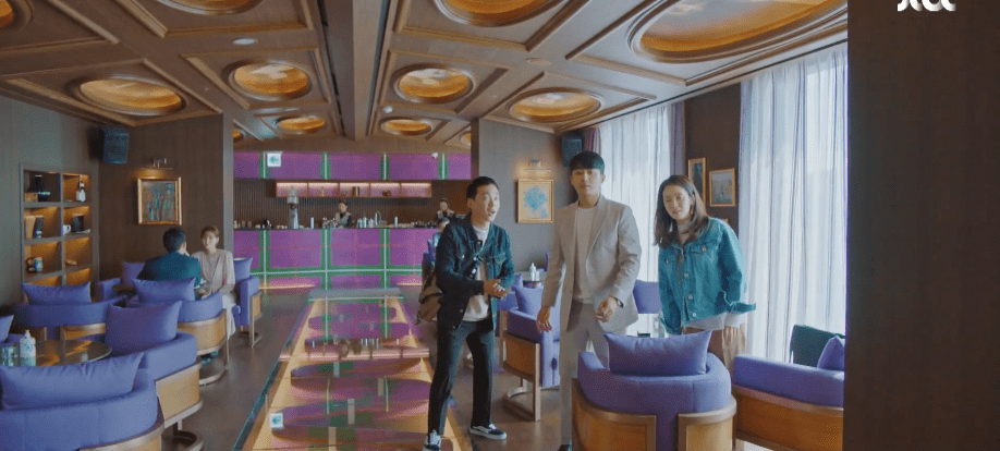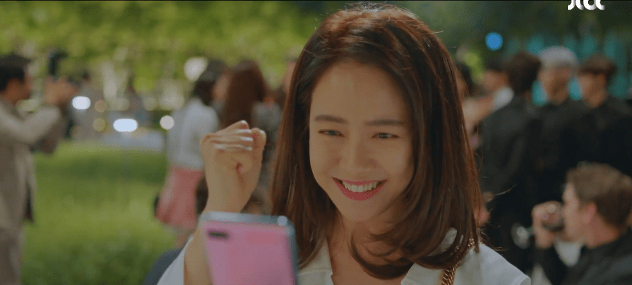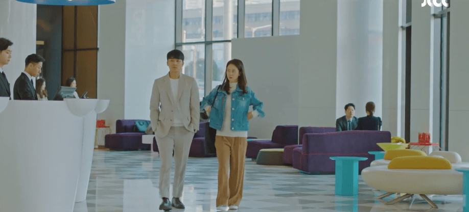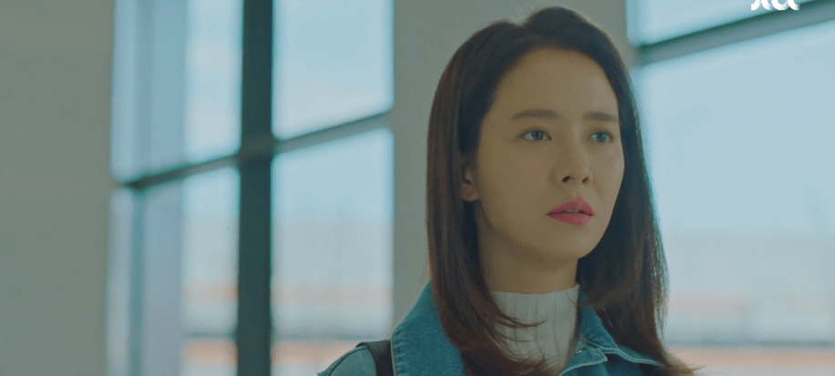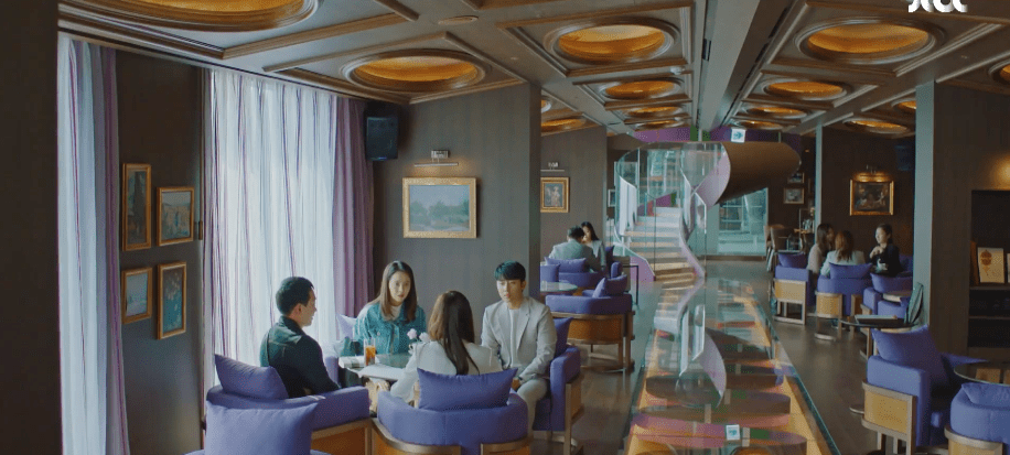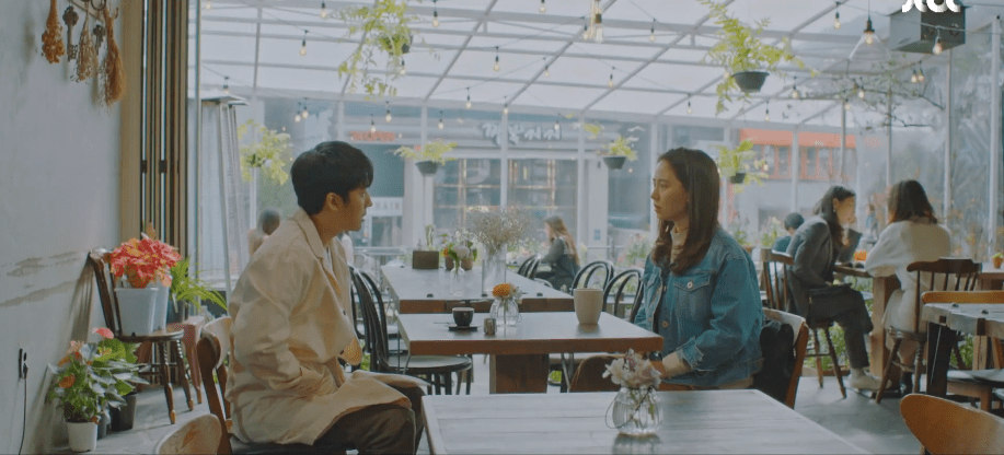 Ah-rin wants to look at natural and pretty as possible before her meeting with Dae-oh. After checking in with Manager Do about her looks, the two walk over to the hotel restaurant where Dae-oh is waiting for her. She’s confident and excited upon seeing Dae-oh seated at a table. She struts down the restaurant and approaches who she believes is only Dae-oh. Ah-rin is even reminded of a similar scene back when she was in high school. Just like how Dae-oh is waiting for her at the hotel restaurant, she was walking towards Dae-oh in her high school uniform while he waited outside in his neighborhood. As Ah-rin gets closer and closer to Dae-oh in the hotel restaurant, she realizes that he’s not the only one there. Ae-jung too is with him. Oof. Similarly, the same thing happened back during the high school memory. Ah-rin was walking towards Dae-oh only to watch Ae-jung come up from behind her and run towards Dae-oh who she was in a happy relationship with at the time. In the present, Dae-oh and Ae-jung are excited to meet with Ah-rin, but she freezes upon seeing the two of them together. Ah-rin retreats to the restroom to process the moment and assumes Dae-oh and Ae-jung are still in a relationship with each other.