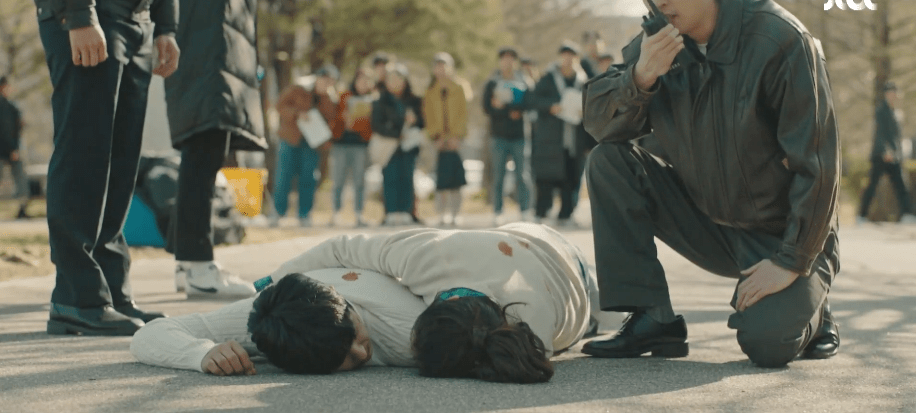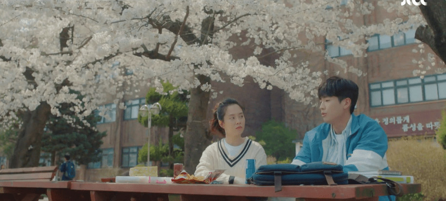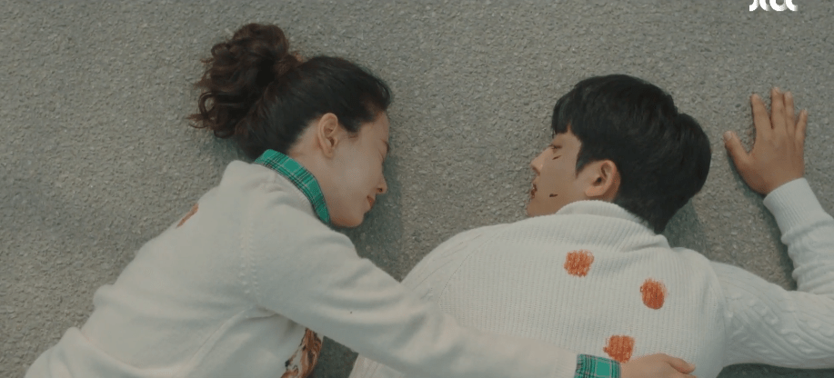 As with all the episodes prior, the scene that stood out to me the most in this episode was the scene when Dae-oh and Ae-jung played corpses. Lol. I love how their first interaction and encounter with each other stemmed from Ae-jung’s participation in the Theater and Film department. Her dream was always to become a film producer way before Dae-oh came into the picture and even after he disappeared from the picture. Ae-jung’s dream has always been constant and I loved that she and Dae-oh bonded over that when they first met. It was because of Ae-jung’s dreams of becoming a film producer that they were able to randomly meet and connect and slowly fall in love with each other. The scene itself was funny (Dae-oh questioning why he got involved or being scared of Ae-jung as the two were supposed to play dead), but I loved the way that Dae-oh stared lovingly at Ae-jung. They were supposed to close their eyes since they were playing dead, but he kept his eyes opened because he wanted to keep staring at her. I’m getting sentimental just thinking about it and it definitely was not a good idea to roam around on Instagram before finishing the episode. I saw photos of the two in this scene and got scared for a second that they got run over by the Truck of Doom or that they were injured. Thankfully, it was just all just acting from college and the two were alive and fine in the actual episode. Note to self which I already know but need to be reminded of again: finish the episode first. Spoilers are never fun!