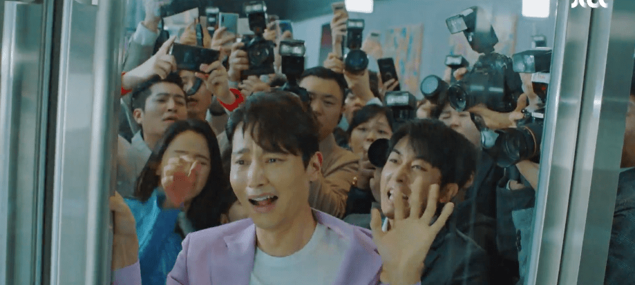 Jin holds a press conference to explain about his current situation with Hollywood and his reasons for turning down an opportunity in Hollywood for Ae-jung’s movie. Things are going well until Ha-nee suddenly appears to claim Jin as her father. Dae-oh’s appearance also throws Jin off and Dae-oh feels betrayed by his best friend who spent a night with Ae-jung after their break-up. Ae-jung too joins alongside Ha-nee and she questions if her one-night stand with Jin meant nothing more to him than just a mistake. Everything is too much for Jin and he struggles to comprehend all that is happening. He suffers a mental breakdown there and then, but luckily, it’s all just a bad bad dream. Jin wakes up in a sweat and the first thing he does after waking up is read Ae-jung’s text about Ah-rin’s confirmation in the movie and her invitation to Cheonmyeong’s Night. He then calls out Manager Myung to bring him some water, but he’s reminded that he and Manager Myung aren’t on the best terms at the moment. With that, Jin steps out of his bedroom to grab some water himself. However, Jin discovers that despite the current situation between him and his manager, Manager Myung still cares for Jin. Manager Myung had sneaked inside his place to cook him some breakfast and left Jin a note to remind him to take care of himself. Jin chases after Manager Myung after reading the note and the two make up with each other.