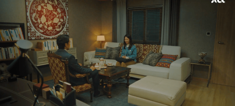 Just then, a car approaches the two so they step aside to see who it is. It’s none other than Dong-chan’s dad, Pa-do, and he walks up to both Ae-jung and Dong-chan. Just as Ae-jung explains the situation, Dong-chan steps up to clarify that Ae-jung simply walked him home. With that, Ae-jung is invited inside the house to have a talk with Pa-do. After learning that Pa-do is a single father himself, she’s certain that Dong-chan must be lucky to have a great dad like him despite what Pa-do thinks. As a single mother herself, she feels as if they can relate to each other since they’re both single parents. Upon hearing her comment, Pa-do is reminded of the moment when a woman who he knew (I’m assuming the woman later on turned out to be his former wife) asked to be friends with him. As he listens with a bag of medicine in his hand for the woman whose name is Tan Ziyi, she reasons that they’re both lonely so it would make the perfect excuse for them to be acquainted. In the present, Pa-do ends the meeting after recalling the memory and Ae-jung goes back home. She beats herself up over forgetting to inform Pa-do about Ah-rin’s confirmation to star in the movie. Lol.