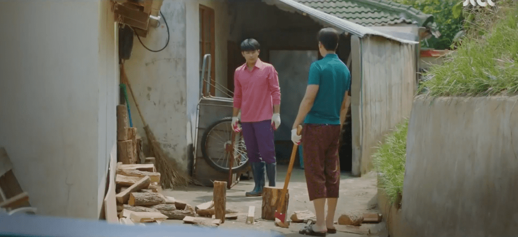 Dae-oh has a challenging time with his task of cutting firewood. Yeon-woo shows him how to properly cut the firewood shortly afterwards, but he also reminds Dae-oh to stay away from Ae-jung. Yeon-woo is certain that Dae-oh will never be able to make Ae-jung happy again. How can he guarantee that he won’t hurt her again? The sincerity and loyalty is not there and that’s why Yeon-woo will do whatever he can to protect Ae-jung. Eventually, Yeon-woo moves on with his job by grabbing some of the firewood pieces to light the furnace. Dae-oh asks for directions to the grocery store for he’s desperate to meet up with Ae-jung, but the village head assumes he wants a way out of his task. Lol. Dae-oh ends up biking his way to the grocery store (“ain’t nobody got time to chop firewood right now!”). Pa-do himself is occupied with protecting Ae-jung. However, he too comes across a little bump of his own with the village head’s wife. She asks for him to clean one of the fishes that they caught so Pa-do uses his special knife to do so. Pa-do is such an expert with knives he’s even able to hold a conversation with the village head’s wife while cleaning the fish, lol. Although the village head’s wife claims that she hasn’t seen anyone suspicious on the island just yet, Pa-do is still keen on heading to the grocery store where Ae-jung is — that is, until he finishes cleaning the rest of the fishes. Lol.