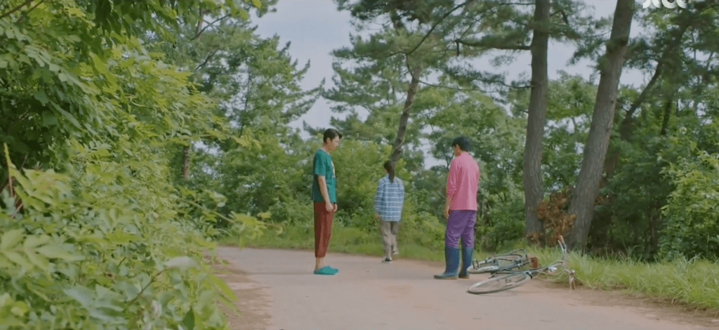 However, Ae-jung is okay with it. The past is the past and she’s no longer the 23-year old Ae-jung that he knew back in college. She’s now a single mother to a 14-year old child. She’s changed. Just when Jin is close to making a confession to Ae-jung, a loud tractor with a few villagers on it pass by the pair and it’s unknown as to what exactly Jin voiced to Ae-jung. Dae-oh also ends up finding the two so he interrupts their walk with his presence. He begins by scolding Jin for taking Ae-jung with him, but Ae-jung puts both guys in their place. She reminds them to stay professional with each other and to not drag personal matters or feelings into things. They’re here to help out with the movie.