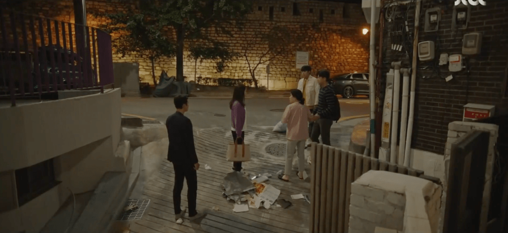 Things take a dramatic turn when Dae-oh confronts Ae-jung in front of her house about whether he’s Ha-nee’s father or not. All the comments about Ha-nee’s dad “being dead” now makes sense to Dae-oh and he assumes he’s the person they’re referring to. Yeon-woo, Grandma, and Jin are all there and Grandma grows flustered when Ae-jung questions the possibility of Dae-oh being the father. Eventually, the chaos concludes when Ae-jung shouts for everyone to stop. Nothing will change now anyways and no one should mention anything to Ha-nee. Before entering the house, Ae-jung warns for Dae-oh to never appear in front of the house again.