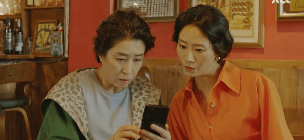 The former colleagues talk things out in the Thumb Films office where CEO Wang and Ae-jung lash out at each other. CEO Wang argues that Ae-jung should be grateful to him that she’s even able to work on the film adaptation for Cheon Ok-man’s novel, but Ae-jung blames CEO Wang for doing such a thing. If he had never gotten Dae-oh to sign a contract in the first place, none of this would have happened. Dae-oh and Grandma also meet at a cafe to talk things out. Grandma makes it clear that she too doesn’t like or want to see Dae-oh if Ae-jung feels that way towards him, but Dae-oh lets all his feelings out. He’s been struggling to process his emotions and thoughts. A part of him is aware of the past mistakes that he’s committed, but he wants to still be in Ae-jung’s life. He regrets what he’s done in the past and he apologizes for everything to Grandma. Grandma questions Dae-oh’s sincerity in his feelings for Ae-jung and whether or not he really means it when he says that he misses Ae-jung. Grandma can’t help but feel pitiful and sympathetic for Ae-jung who she realizes grew up to be a lot like her.
