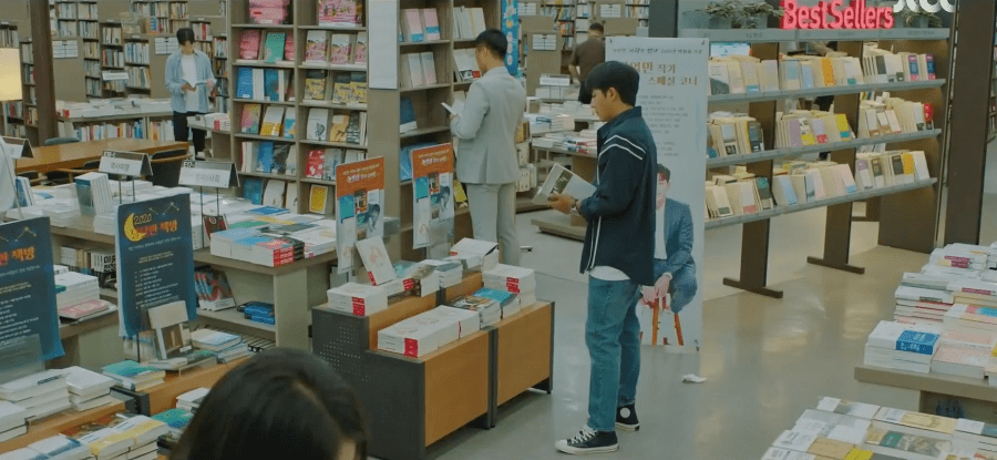 Dae-oh heads to a bookstore afterwards and is so disappointed in himself that he tears up copies of his book “Love is Nonexistent” in a section of the bookstore that is dedicated to just him. It takes a few of the bookstore employees to stop him from doing any further damage (sooo dramatic omg lol). Meanwhile, Ah-rin and Jin take a break to catch up with each other and to just chat about their respective love lives. Jin recommends for Ah-rin to give up on her pursuit after Dae-oh. He doesn’t feel the same way towards her and although Ah-rin might feel confident that things will go well, her actions might only make things worse.