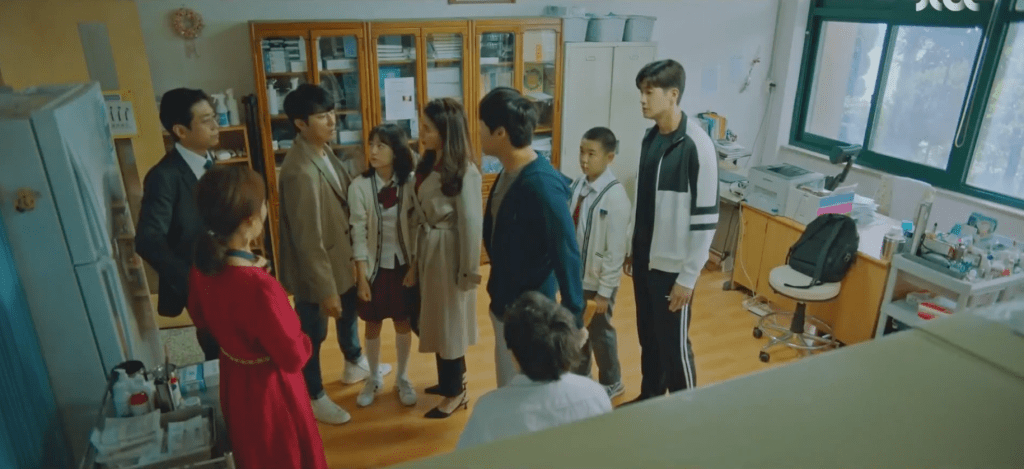 Ha-nee protects herself at school when the school bully confronts her about the news article. Dong-chan even jumps in this time to assist his best friend and together, Ha-nee and Dong-chan fight against the school bully and his group. Eventually, they’re called into the teacher’s office which was why Yeon-woo contacted Ae-jung. The school bully’s parents aren’t happy with Ha-nee fighting their son once again and even belittles Ae-jung when she arrives at the office. The school bully’s dad brings up the news article as well as criticizes Ae-jung for not having a good reputation. Ha-nee stands up for her mother and tugs at the school bully’s dad’s neck which doesn’t sit well with Mr. Jang who stands nearby. Eventually, the brief altercation comes to a stop when Dae-oh steps in. He demands for Mr. Jang to let go of Ha-nee’s wrist and when asked who he is, Dae-oh boldly and sternly declares that he’s Ha-nee’s father. Ae-jung and Ha-nee turn their heads to stare at Dae-oh while Dae-oh keeps his eyes focused on Mr. Jang. He’s loud and clear. He’s the father.